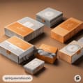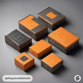 Set of gray and orange boxes with sleek patterns.