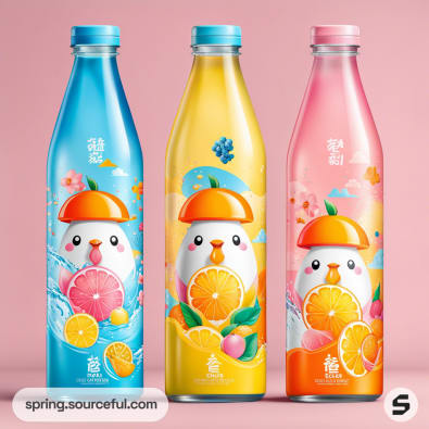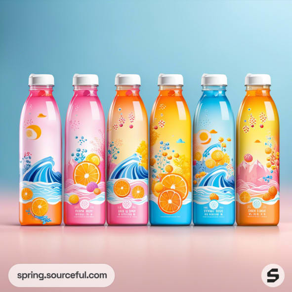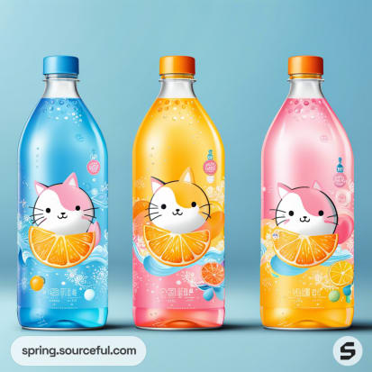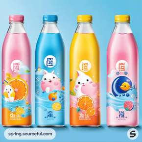 Discover the perfect blend of creativity and functionality with our unique packaging inspiration for flavoured water. Our designs, influenced by vibrant Japanese cartoons and bright pastel color schemes, are sure to captivate your customers. Explore a variety of packaging types, all adorned in eye-catching shades of orange, yellow, pink, and blue. Make your flavoured water product stand out on the shelves with our innovative and aesthetically pleasing packaging designs.
