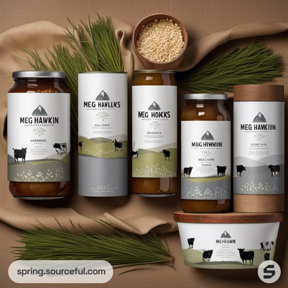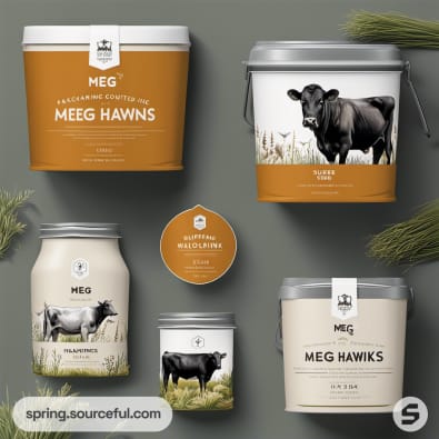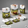 Farm-themed packaging with rustic tones and cattle illustrations.