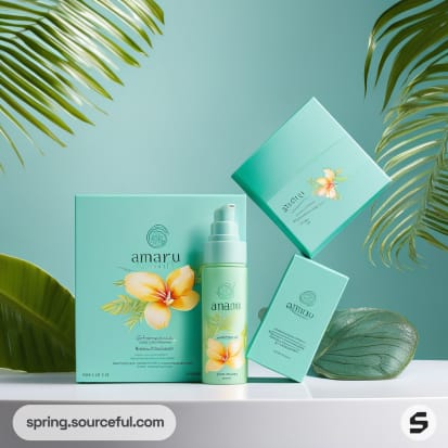 Discover the perfect blend of luxury and nature with our shoulder neck rigid box packaging for natural, organic cosmetics. Our design inspiration draws from vibrant tropical aesthetics, featuring a sophisticated light blue color scheme. Experience the glamour of high-end packaging that complements the purity of organic products. Elevate your brand with our luxurious, eco-friendly packaging solutions that resonate with the natural beauty of your cosmetics.