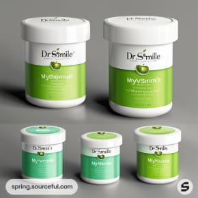 Green and white cosmetic jars with apple branding.