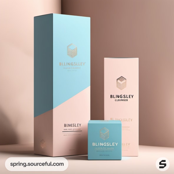 Stacked pastel boxes in pink and blue for Blingsley.
