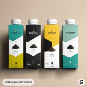 Black and white tea packages with clean design.