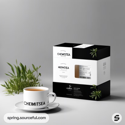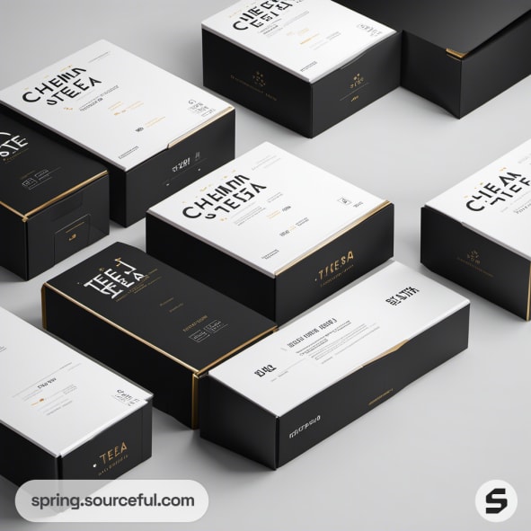 Black and white tea boxes with minimalist design.
