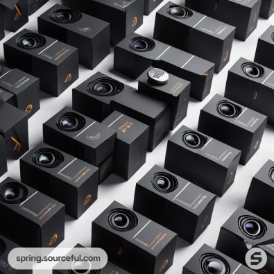 Discover innovative packaging inspiration for wireless spy cameras, designed with an industrial, avant-garde aesthetic. Our carton product boxes, featuring a sleek color scheme of black, slate gray, and white, perfectly encapsulate the covert nature of the product. Enhance your product's appeal with our unique packaging design that seamlessly blends functionality and style. Elevate your brand with our packaging solutions that are as cutting-edge and discreet as your wireless spy cameras.