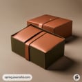 Two rectangular leather boxes with brown lids and green bases on a beige surface.