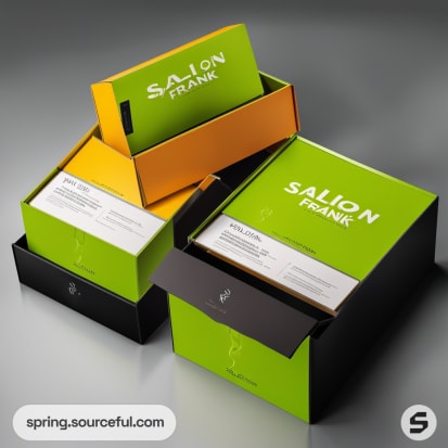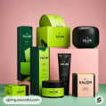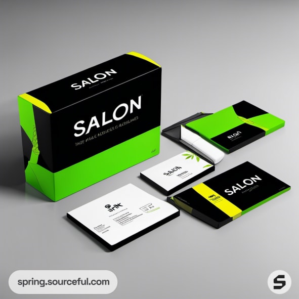 Assorted black and green salon product packaging.