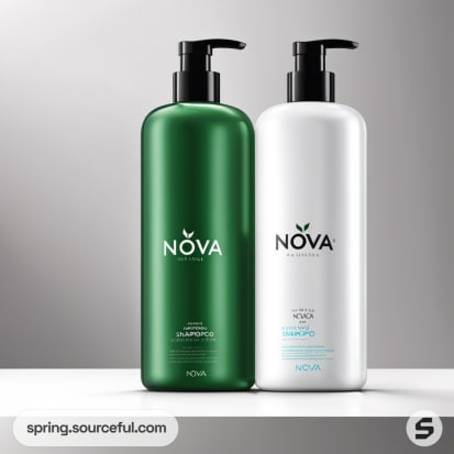 Large green and white shampoo bottles with pump dispensers