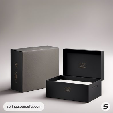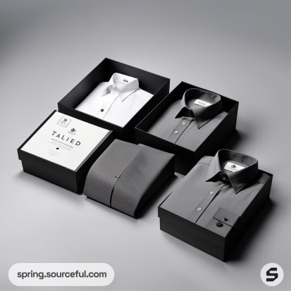 Two tall black boxes labeled 'Tailord,' closed with ribbon.