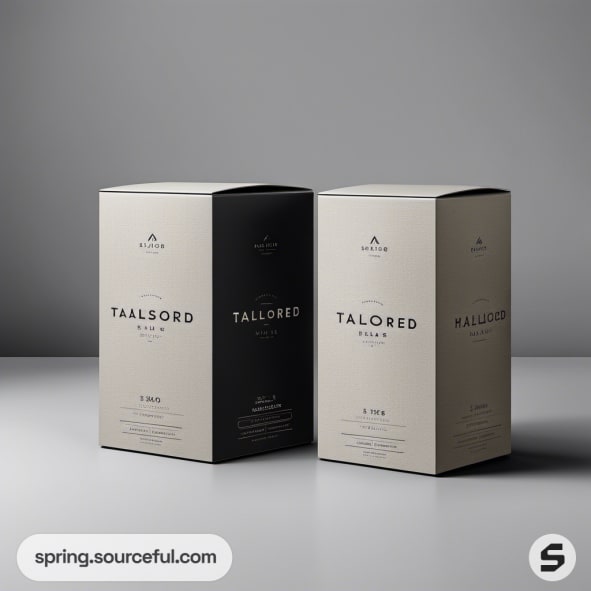 Two tall rectangular boxes, one black, one cream, labeled 'Tailored.'