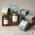 Various rustic-themed boxes with animal illustrations.