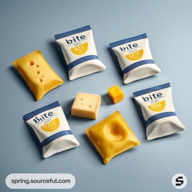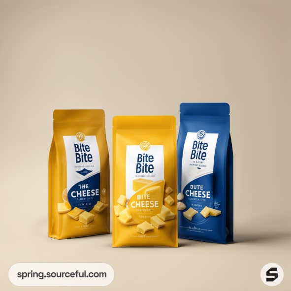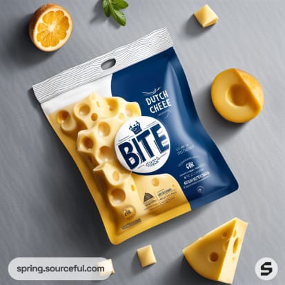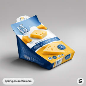 Discover fresh and innovative packaging inspiration for Dutch cheese, presented in a resealable pouch for optimal freshness. Our design incorporates a vibrant color scheme of blue, white, and yellow, reflecting the traditional Dutch aesthetic. This packaging not only preserves the quality of the cheese but also adds a touch of Dutch charm to your product. Enhance your brand's appeal with our unique and eye-catching Dutch cheese packaging design.