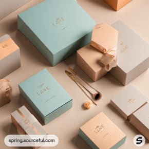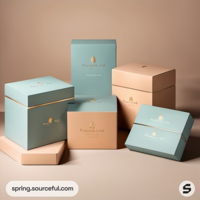 Stacked blue and beige boxes with gold accents for luxury branding.