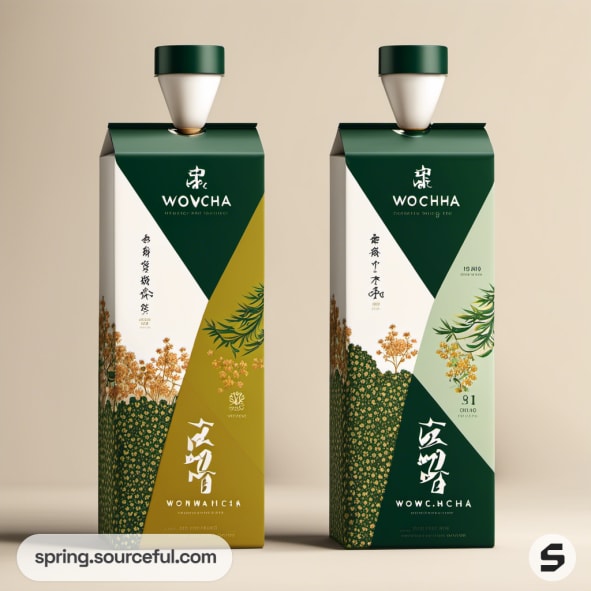 Discover modern and aesthetic packaging inspiration for Japanese genmaicha tea, a unique blend of green tea and roasted brown rice. Explore a variety of packaging types, all designed with a harmonious color scheme of green, brown, and black. Immerse yourself in the rich Japanese culture while enjoying the contemporary design elements. Let our packaging ideas inspire you to create a captivating visual experience for your genmaicha tea product.