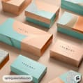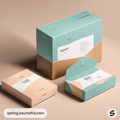 Peach and teal rectangular boxes and a triangular flap box with clean design.