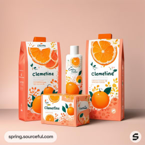Clementine-themed packaging with citrus designs on a peach background.