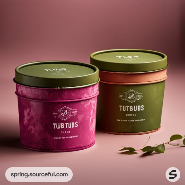 Two cylindrical container packs, one pink and one green, on a pink background.
