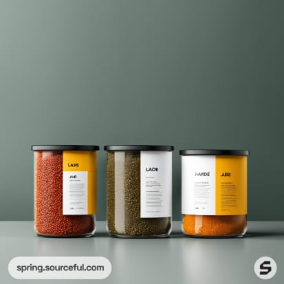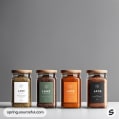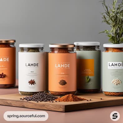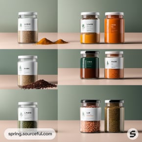 Assorted spice jars with vibrant minimalist designs.