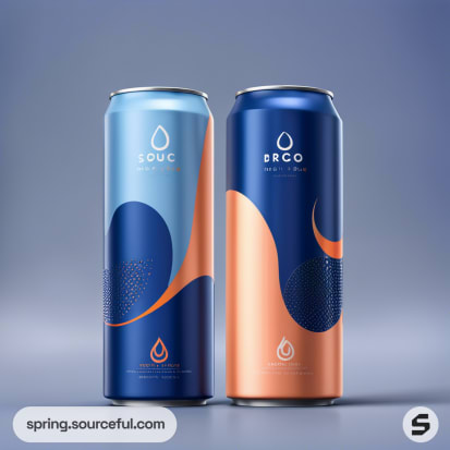 Two tall cans with abstract blue and orange designs on a gradient background.