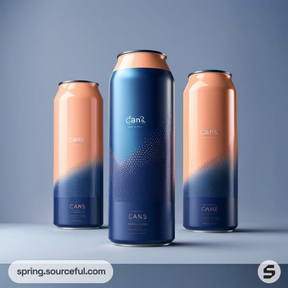 Tall aluminum cans with blue and peach gradient design on a gray background.
