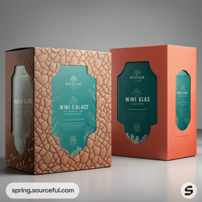 Two decorative boxed wine glasses in textured and smooth packaging.