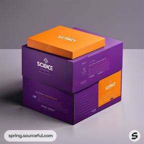 Stacked purple and orange boxes labeled 'Science' on a grey surface.