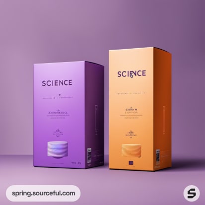 Two product boxes, one purple and the other orange, labeled 'Science.'