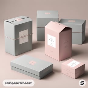 Discover unique packaging inspiration for your vintage pre-loved fashion items. Explore a variety of packaging types, all designed with a minimalist aesthetic and a charming color scheme of pink, white, and slate gray. Enhance the appeal of your vintage fashion products with our creative packaging ideas. Make your brand stand out with our innovative and stylish packaging solutions for vintage pre-loved fashion.