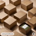 Diverse group of brown and green boxes, various sizes on a tan background.