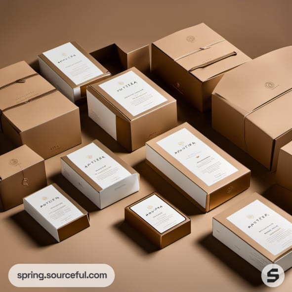 Variety of brown and white elegant boxes in a neat arrangement.