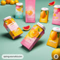 Cartons of summer drinks with fruit graphics on a green background.