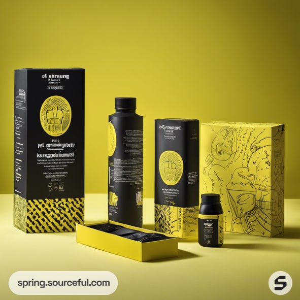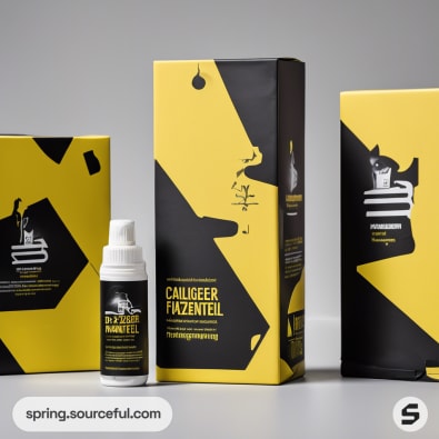 Discover innovative packaging inspiration for Nahrungsergänzung für Männer, a dietary supplement designed specifically for men. Our mailer box design combines an edgy, illustrative aesthetic with a bold color scheme of black and light yellow. This unique packaging not only ensures product safety but also enhances the unboxing experience. Make your product stand out with our striking and masculine packaging design.
