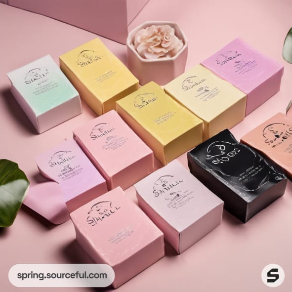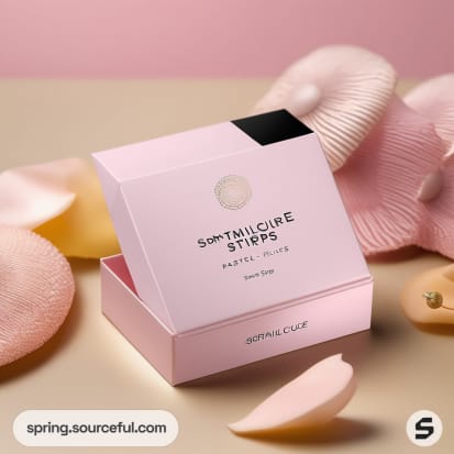 Discover the perfect packaging inspiration for manicure nail gel strips, presented in a stylish mailer box. Our design combines a chic color scheme of light pink, black, and light yellow, embodying a pastel, natural, bohemian, classic, vibrant, and glamorous aesthetic. This packaging design not only ensures the safety of the product but also enhances its appeal, making it an ideal gift option. Explore our unique packaging ideas and elevate your manicure nail gel strips presentation.