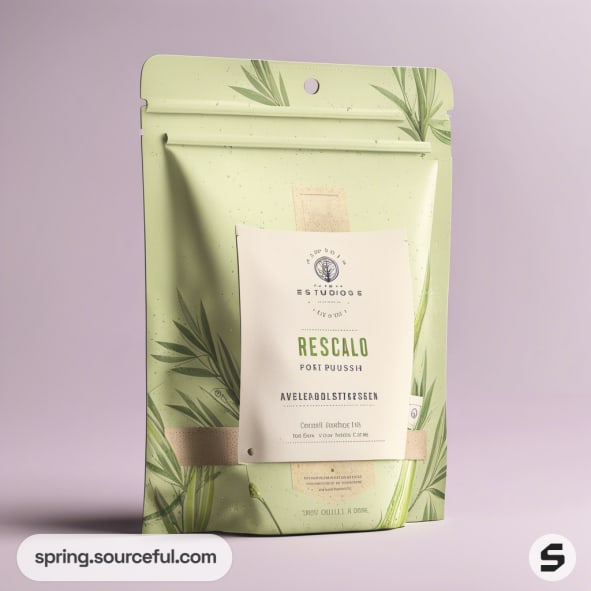 Light green resealable pouch with leaf design, labeled 'Rescalo Whole Yerba Mate'.