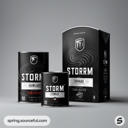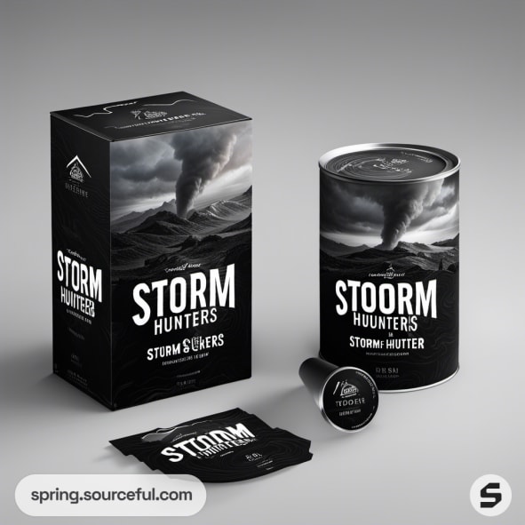 Black bottles and a box with storm hunter branding