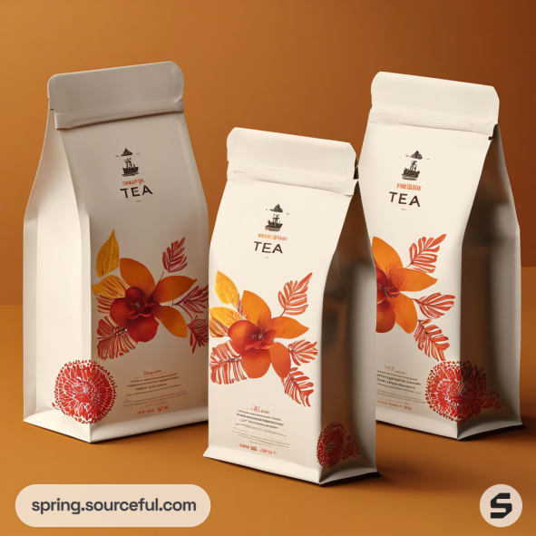 Discover the perfect blend of classic aesthetics and vibrant colors with our tea packaging inspiration. Our paper mailer bags, adorned in a warm color scheme of orange, yellow, and red, encapsulate the essence of your tea product. These designs not only ensure the freshness of your tea but also make a bold statement on the shelf. Explore our packaging inspiration and elevate your tea brand with our timeless and captivating designs.