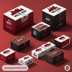 Variety of Rish's boxes with red and white design.