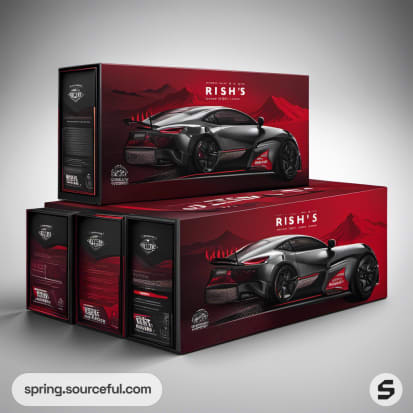 Red sports car image on Rish's Ride box packaging.