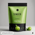 Green resealable pouch with black stripe and green apple graphic.