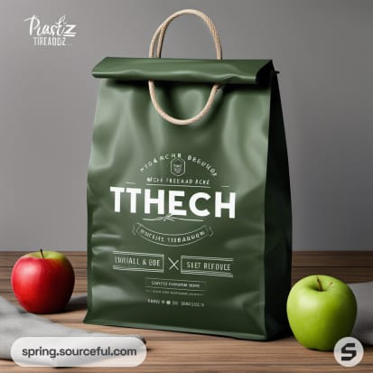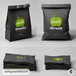 Dark gray folded paper bags with green apple motif.