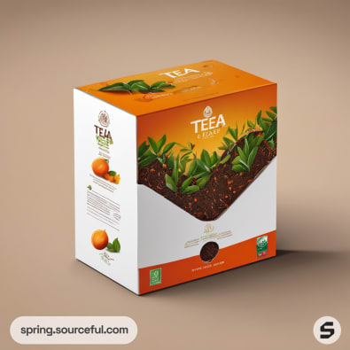 Discover the perfect blend of design and functionality with our Kenya-sourced tea leaves packaging. Our product box carton, adorned in a vibrant color scheme of orange, yellow, red, amber, and brown, captures the essence of the rich Kenyan tea fields. Despite the warm hues, the aesthetic is intentionally cold, reflecting the freshness of the tea leaves. Let our packaging inspiration guide you in creating a visually appealing and practical design for your tea products.