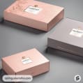 Stacked light pink boxes with elegant and minimalist branding.
