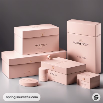 Set of various-sized pink boxes with sleek design for haircare.