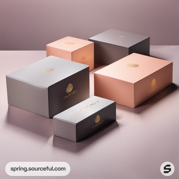 Luxury pink and silver gift boxes with minimalist design.