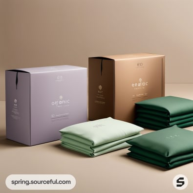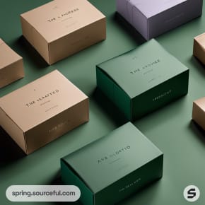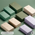 Assorted elegant packaging boxes with minimalist design on a green backdrop.