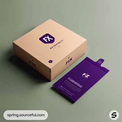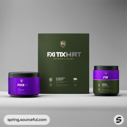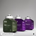 Tan box and purple sachet labeled 'Fix' on a green background.