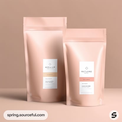 Two pink resealable pouches on beige background.
