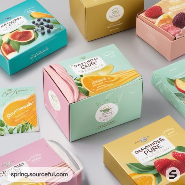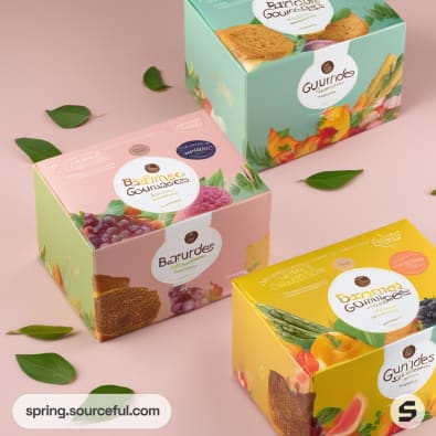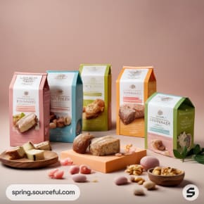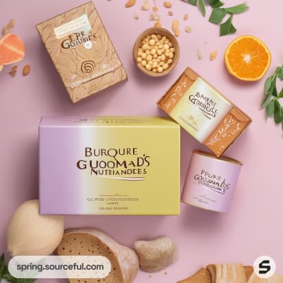 Discover the perfect blend of luxury and health with our premium gluten-free gourmet bars, elegantly packaged in a product carton box. Our chic and illustrative design, featuring natural tones and vibrant color accents, highlights the natural ingredients of our gluten-free bars. The color scheme of brown, beige, light brown, dark yellow, and dark red adds a touch of sophistication, making it an ideal choice for the dynamic and discerning CSP+ target audience. Experience the pastel and natural aesthetic that perfectly encapsulates the nutritious goodness within.