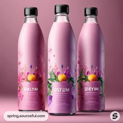 Discover the perfect packaging inspiration for our 500 ml Slim Drink, a luxurious wellness liquid designed for you. Our bottles boast a chic and natural aesthetic, with illustrative designs in a vibrant pink and violet color scheme. Experience the high-level, expensive feel of our product, reflecting the quality of our wellness drink. Elevate your health journey with our elegantly packaged, premium Slim Drink.