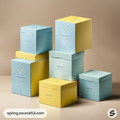 Stacked pastel yellow and blue cubic boxes.